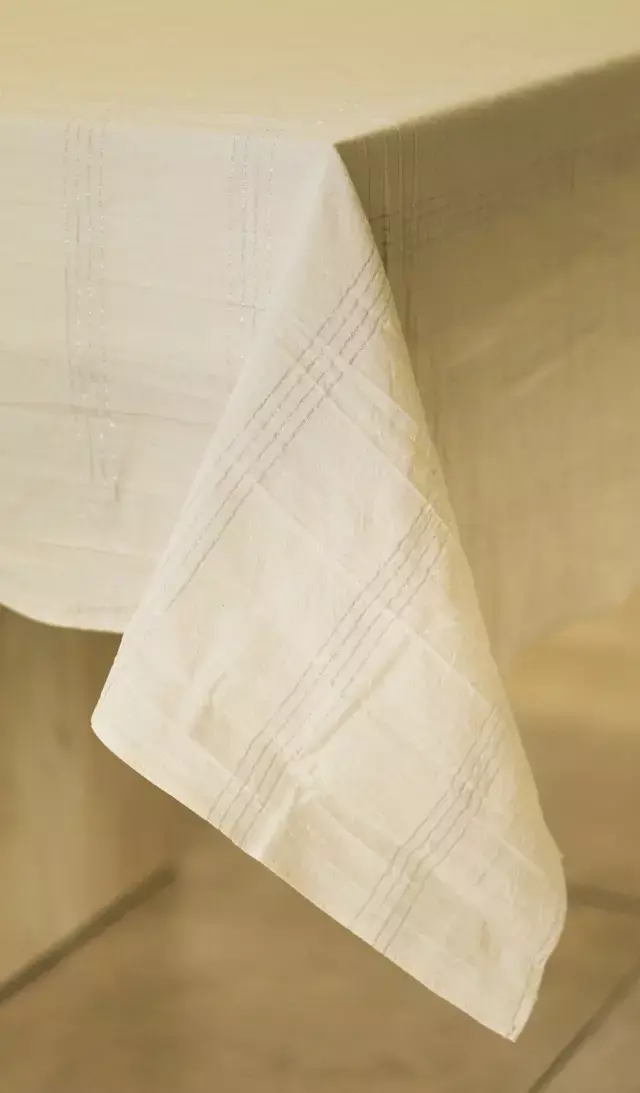 El mantel Aura, de tusor 100% algodón con delicado lúrex plata, está pensado para grandes mesas donde se comparten momentos que se atesoran. Perfecto para fiestas, aniversarios o eventos familiares, aporta elegancia y calidez en una sola pieza.