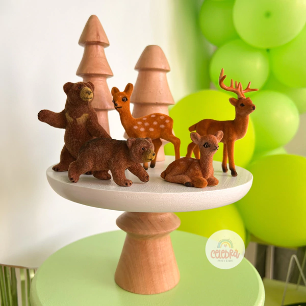 Oso grande, oso bebe, ciervo bebe, ciervo grande y ardilla